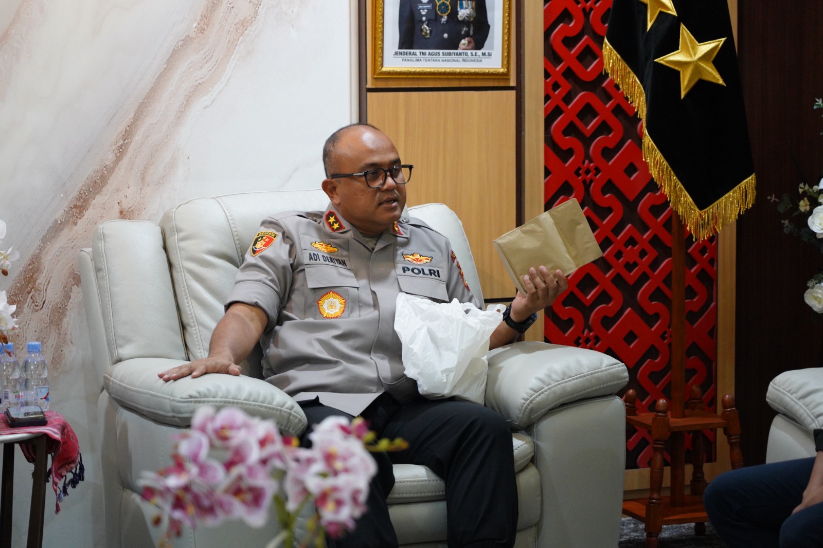 POLDA SULBAR, NEWSPAS.NET – Kapolda Sulawesi Barat Irjen Pol Adi Deriyan Jayamarta menerima audiensi pengurus Ikatan Pelajar Mahasiswa Polewali Mandar dan Sekitarnya (IPMAPUS) Sulawesi Barat, Kamis (18/12/25), di ruang tamu Kapolda Sulbar. Pertemuan tersebut membahas pengembangan potensi ekonomi lokal serta peran organisasi mahasiswa dalam aksi nyata di tengah masyarakat.