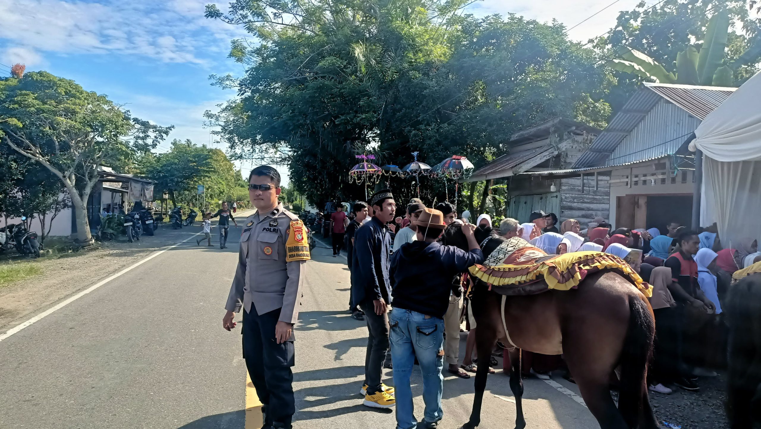 Kegiatan adat yang digelar oleh Bapak Zulkifli ini berlangsung meriah dan dihadiri oleh warga dari berbagai desa sekitar. Aipda Hamdani turut melakukan pengaturan arus lalu lintas di sepanjang jalan Trans Sulawesi guna memastikan kelancaran iring-iringan kuda hias “Sayyang Pattuddu”.