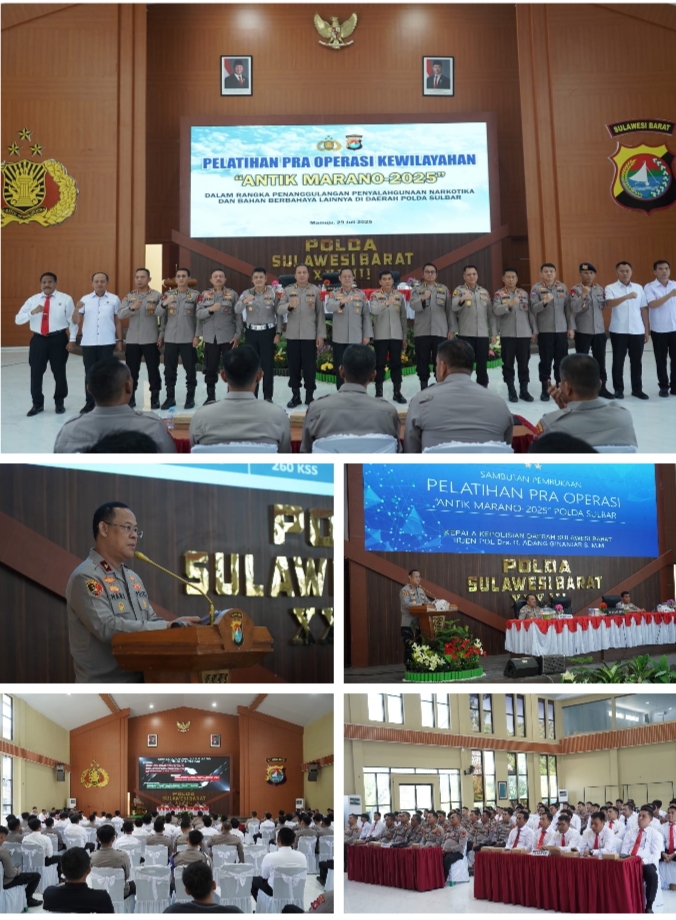 POLDA SULBAR, NEWSPAS.NET – Wakapolda Sulawesi Barat, Brigjen Pol. Hari Santoso, secara resmi membuka kegiatan Latihan Pra Operasi (Latpra Ops) Antik Marano 2025 di Mamuju, Sulawesi Barat. Kegiatan ini digelar sebagai langkah strategis untuk meningkatkan kemampuan personel dalam memberantas peredaran narkoba yang semakin mengkhawatirkan.