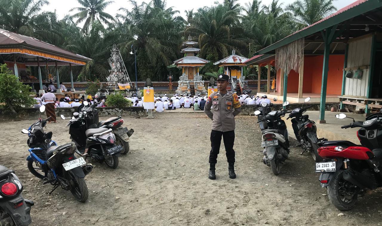 Dalam pelaksanaan tugasnya, BRIPKA Arhi Mustofa hadir memastikan seluruh rangkaian ibadah berjalan aman, tertib, dan lancar. Kehadiran aparat kepolisian di lokasi ibadah bertujuan memberikan rasa aman bagi umat Hindu yang sedang melaksanakan persembahyangan, sekaligus menjaga situasi tetap kondusif selama kegiatan berlangsung.