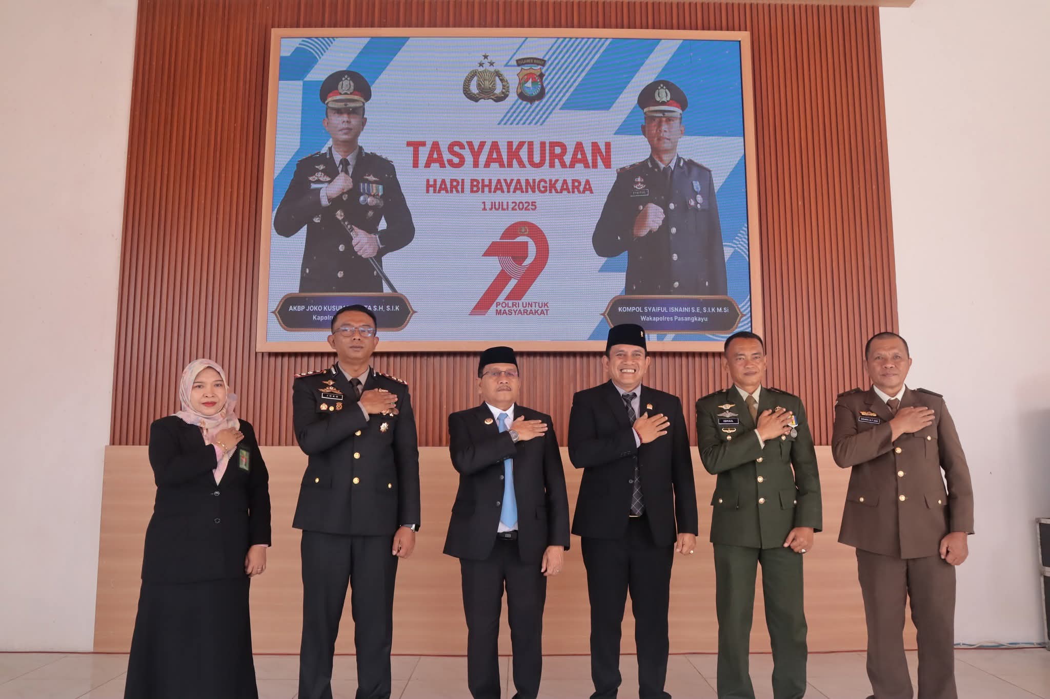 “Atas nama Pemerintah Daerah Kabupaten Pasangkayu, saya mengucapkan selamat Hari Bhayangkara ke-79. Kami mengapresiasi kerja keras Polri yang terus hadir sebagai pelindung, pengayom, dan pelayan masyarakat. Semoga Polri semakin presisi dan dicintai rakyat,” ujar Bupati.