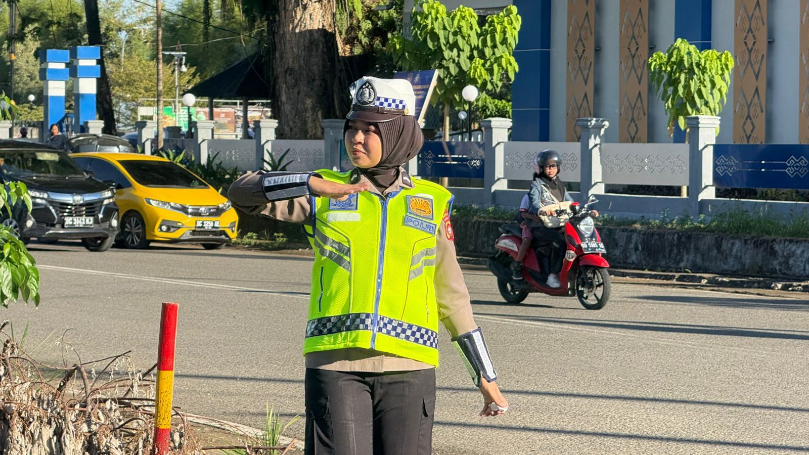 Setiap pagi, petugas Ditlantas Polda Sulbar sigap mengatur arus kendaraan di persimpangan jalan utama. Salah satunya terlihat di sekitar PSC Mamuju, Rabu (3/12/25), ketika para petugas menjalankan tugas dengan semangat tinggi dan ketulusan dalam melayani masyarakat.