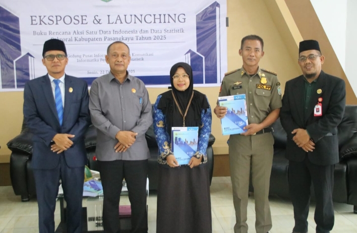 PASANGKAYU,NEWSPAS.NET— Dinas Komunikasi, Informatika, Persandian dan Statistik (Diskominfopers) Kabupaten Pasangkayu menggelar kegiatan ekspose sekaligus launching Buku Rencana Aksi Satu Data Indonesia dan Buku Data Statistik Sektoral Kabupaten Pasangkayu Tahun 2025. Kegiatan ini berlangsung di Gedung Pusat Informasi Smart 4.0 Diskominfo Pasangkayu,Senin/22/12/2025