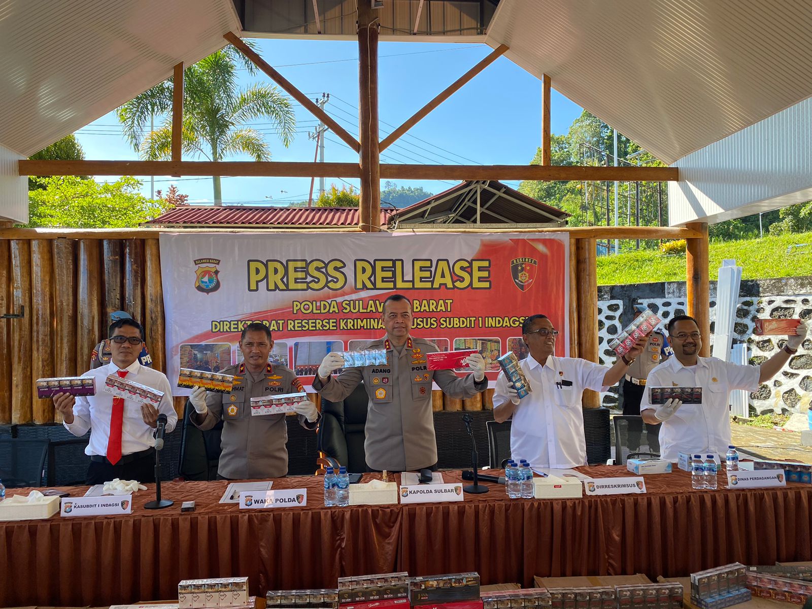 Polda Sulbar, NEWSPAS.NET –  Dalam konferensi pers yang dipimpin langsung Kapolda Sulbar, Irjen Pol. Adang Ginanjar disampingi Dirkrimsus, Dinas Perdagangan, Kabid Propam, Kanit Indagsi dan Bidhumas, terungkap fakta mengejutkan bahwa peredaran rokok ilegal di Sulawesi Barat telah mencapai skala yang mengkhawatirkan.