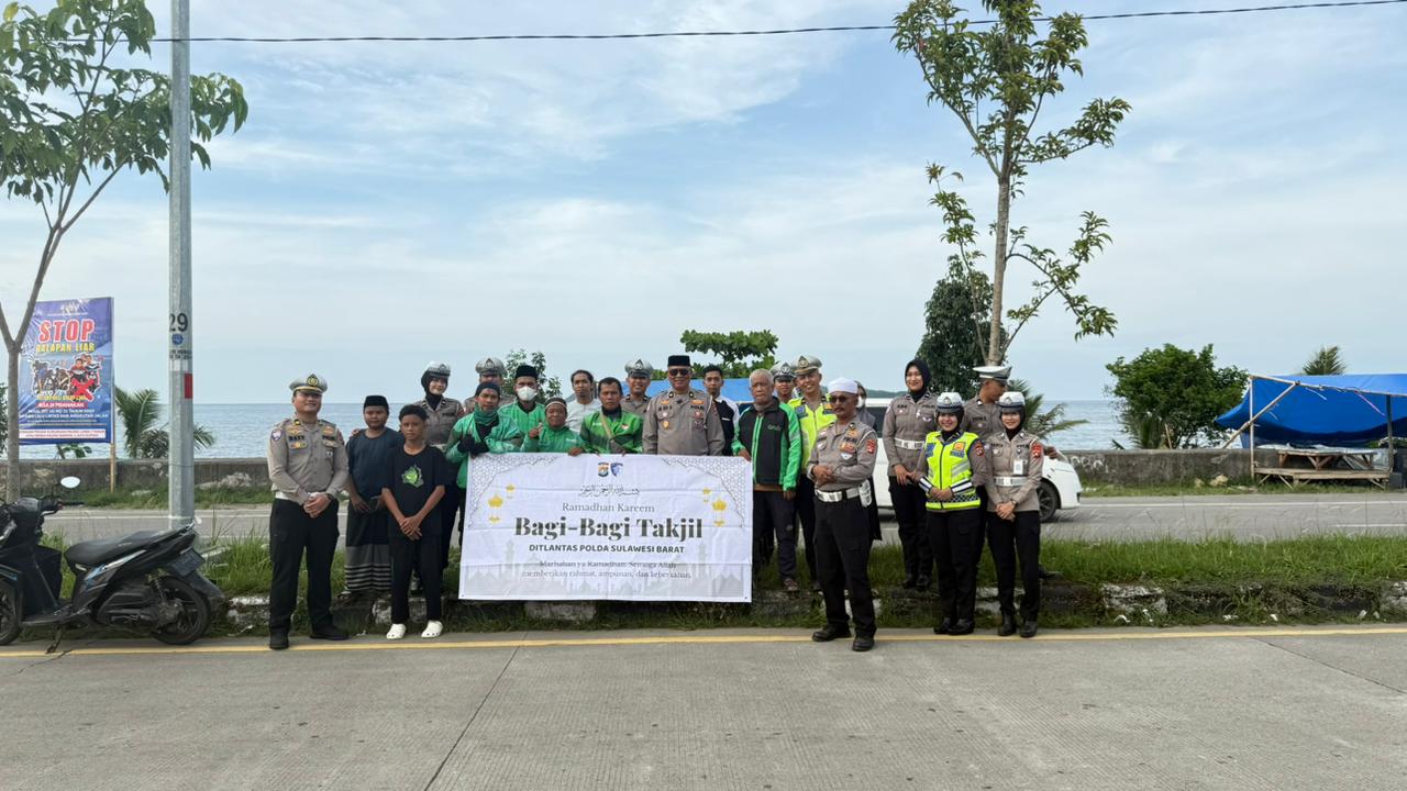 Ditlantas Polda Sulbar Gandeng Komunitas Ojol Bagi Takjil dan Tebarkan Pesan Keselamatan