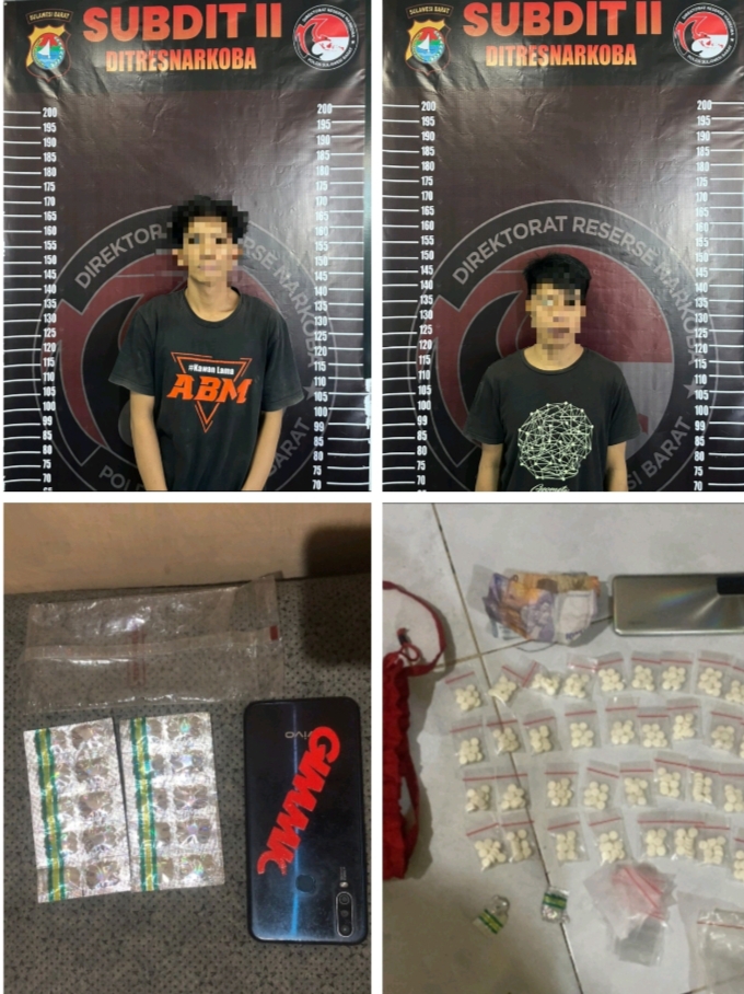 Petugas berhasil mengamankan S dan Y di lingkungan Gernas, Kelurahan Madatte, Kabupaten Polewali Mandar. Penangkapan ini berawal dari informasi masyarakat yang resah atas maraknya transaksi obat-obatan terlarang di wilayah tersebut. Dari tangan S, petugas menyita 39 sachet Trihexyphenidil, 2 butir Tramadol, 20 sachet kosong, uang tunai Rp 17.000, sebuah handphone, tas samping dan sebuah sachet besar kosong.