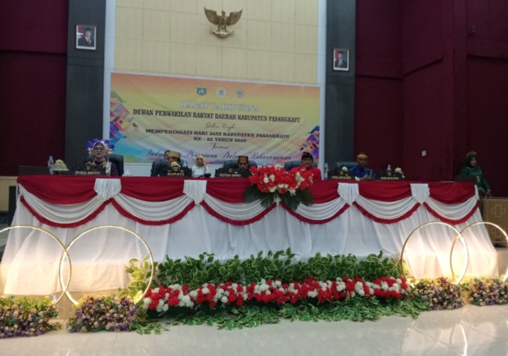 Ketua DPRD Kabupaten Pasangkayu, Irfandi Yaumil, secara resmi membuka jalannya rapat paripurna. Dalam sambutannya, ia menyampaikan ucapan selamat ulang tahun kepada seluruh masyarakat Kabupaten Pasangkayu serta mengajak semua pihak menjadikan momen ini sebagai titik tolak untuk terus melanjutkan pembangunan daerah.
