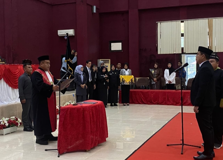 Muhammad Dasri tampak khusyuk mengikuti setiap kalimat sumpah yang dibacakan. Suaranya terdengar lantang dan tegas saat mengucapkan janji untuk menjalankan tugas dan tanggung jawab sebagai Wakil Ketua DPRD Kabupaten Pasangkayu dengan sebaik-baiknya serta mengutamakan kepentingan masyarakat.