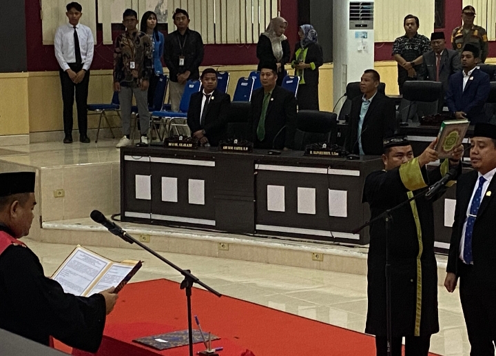 Sejumlah anggota dewan dan tamu undangan memperhatikan jalannya prosesi dengan penuh perhatian. Ruangan terasa hening hingga prosesi pengambilan sumpah selesai dan ditutup dengan penandatanganan berita acara pelantikan.