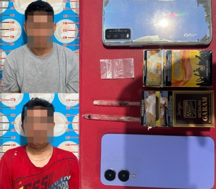 Adapun barang bukti yang berhasil diamankan yakni 1 (satu) sachet kristal bening diduga sabu, 2 (dua) unit handphone merk Vivo warna ungu, 1 (satu) unit mobil Avanza warna merah, 2 (dua) buah pirex, 1 (satu) bungkus rokok merk Surya, 1 (satu) bungkus rokok merk Konser,