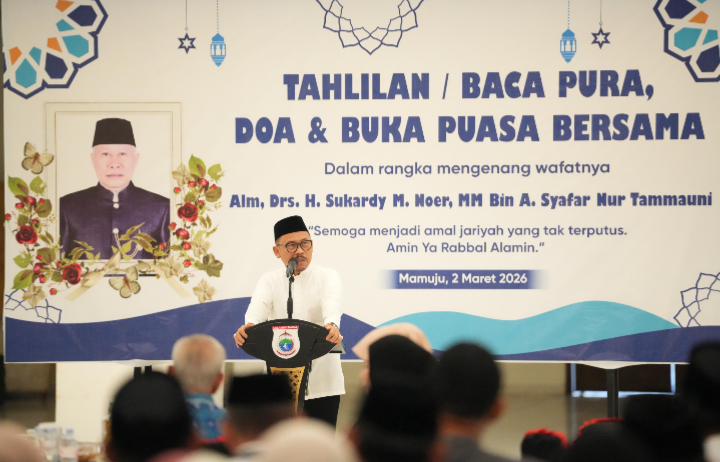 Hal itu ia sampaikan dalam Tahlilan, Baca Pura, Doa dan Buka Puasa Bersama mengenang wafatnya alm Sukardy M. Noer, MM Bin A. Syafar Nur Tammauni di Aula Masjid Raya Suada, Mamuju, Senin 2 Maret 2026.