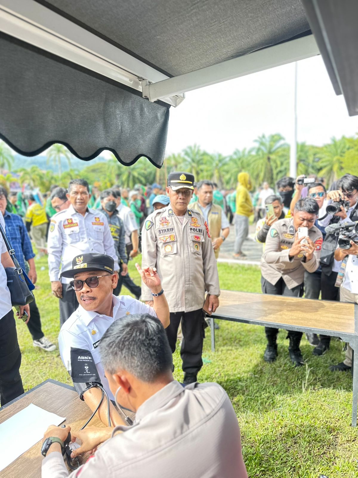 Kegiatan ini meliputi berbagai layanan kesehatan, seperti pemeriksaan tekanan darah, konsultasi kesehatan umum dan pemberian vitamin secara gratis. Bahkan, Gubernur Suhardi Duka juga menyempatkan diri untuk memeriksakan kesehatannya sebagai bentuk dukungan dan contoh bagi masyarakat.