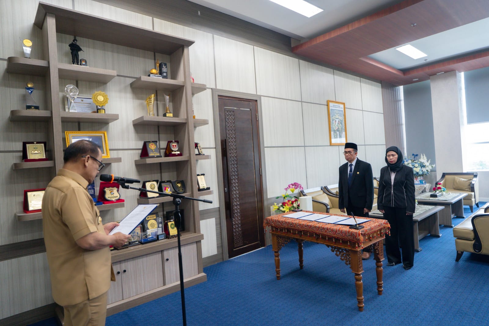 MAMUJU,NEWSPAS.NET- Gubernur Sulbar Suhardi Duka (SDK) melantik jajaran Direksi Perseroda PT. Sulawesi Barat Malaqbi di ruangan kerjanya, Senin 16 Maret 2026.