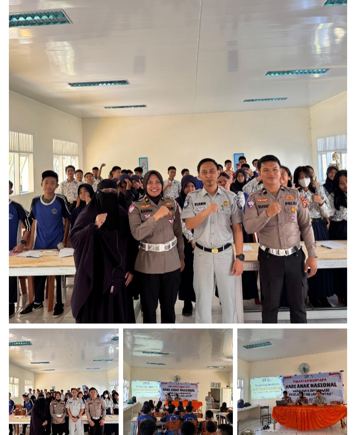 POLDA SULBAR, NEWSPAS.NET – Dalam rangka memperingati Hari Anak Nasional, Subdit Kamsel Ditlantas Polda Sulawesi Barat bekerja sama dengan PT Jasa Raharja Cabang Mamuju menggelar kegiatan Polantas Menyapa di SMPN 2 Mamuju, Kamis (24/7/2025).