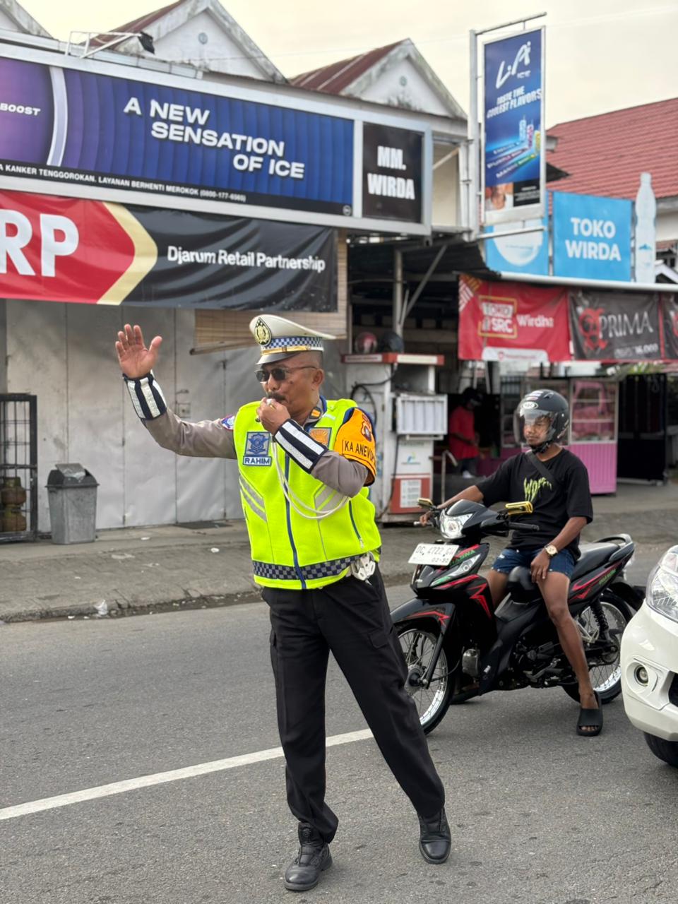 Tak hanya fokus pada kendaraan, dia juga dengan sigap membantu para pejalan kaki yang ingin menyebrang jalan dengan aman, memastikan tidak ada kesenjangan dalam pelayanan kepada semua pengguna jalan.