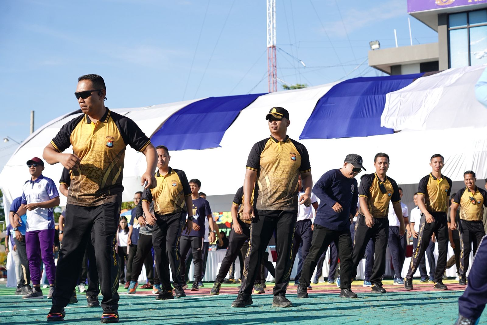 POLDA SULBAR,NEWSPAS.NET– Kapolda Sulawesi Barat, Irjen Pol Adi Deriyan, bersama jajaran pejabat utama Polda Sulbar, turut serta memeriahkan kegiatan olahraga bersama yang digelar di Mako Lanal Mamuju, Jumat (31/10/25).