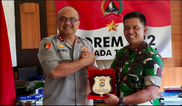 POLDA SULBAR, NEWSPAS.NET – Kapolda Sulawesi Barat, Irjen Pol Adi Deriyan Jayamarta, bersama jajaran pejabat utama Polda Sulbar, melakukan kunjungan silaturahmi ke markas Korem 142 Tatag pada Senin (15/9/25). Kunjungan ini bertujuan memperkuat sinergitas antara TNI dan Polri dalam menjaga stabilitas keamanan dan ketertiban masyarakat (kamtibmas) di wilayah Sulawesi Barat.