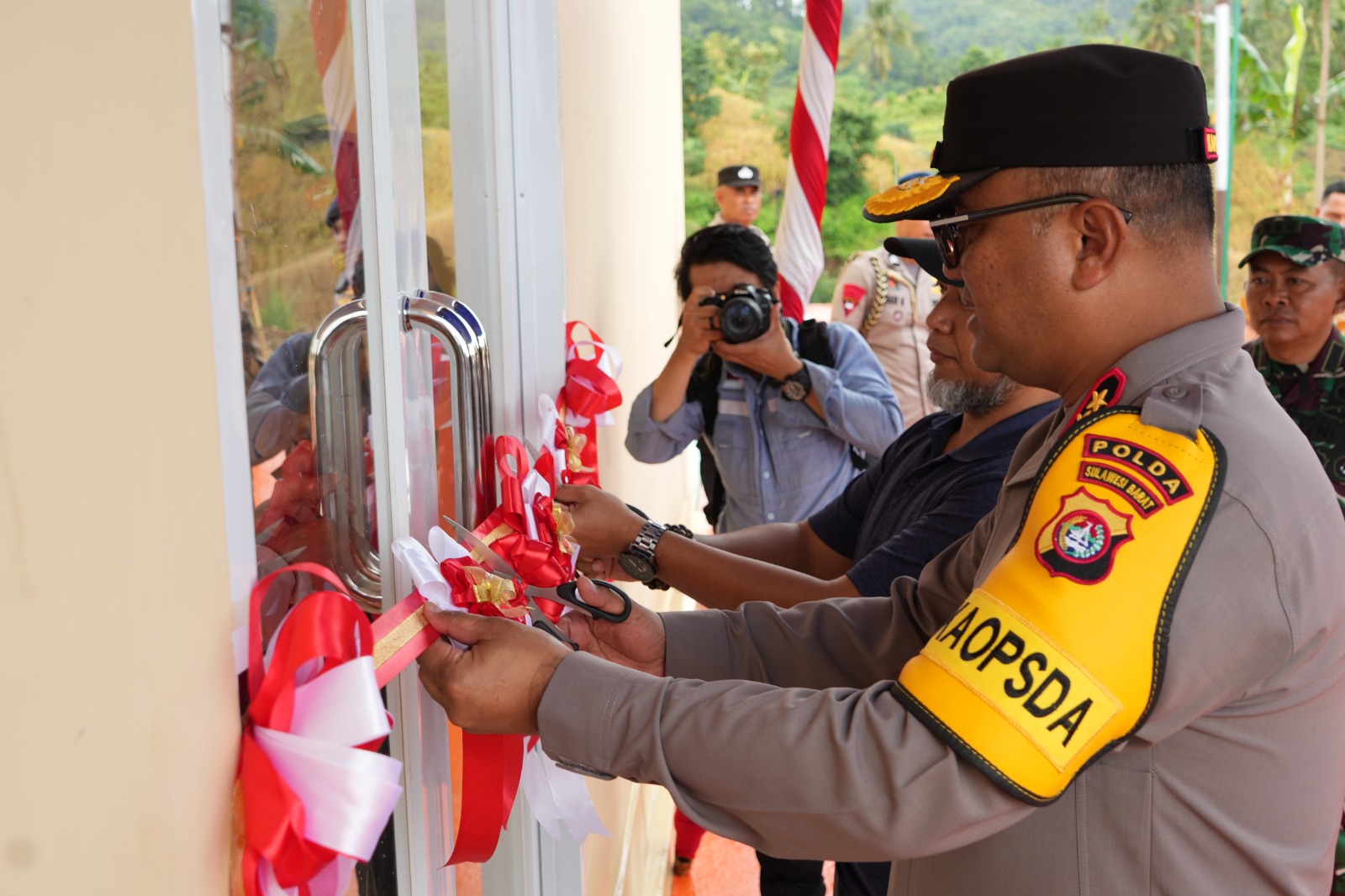 Peresmian Sport Center ditandai secara simbolis dengan pemotongan pita oleh Kapolda Sulbar bersama para tamu undangan yang hadir.