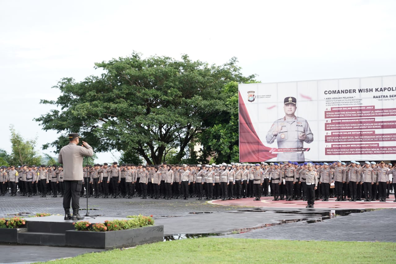 POLDA SULBAR,NEWSPAS.NET– Kapolda Sulawesi Barat, Irjen Pol Adi Deriyan Jayamarta, memberikan wejangan kepada seluruh personelnya saat memimpin apel rutin di lapangan Tribrata Mapolda, Senin (27/10/25). Dalam amanatnya, Kapolda menekankan pentingnya peran polisi sebagai pelayan masyarakat yang sejati.
