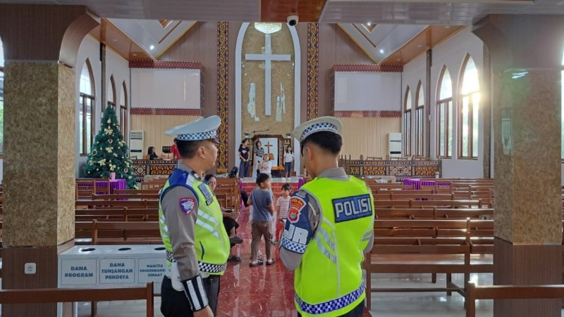 ‎POLDA SULBAR, NEWSPAS.NET – Komitmen Polri dalam menjaga keamanan dan keharmonisan umat beragama kembali terbukti melalui kunjungan personel Ditlantas Polda Sulawesi Barat ke sejumlah gereja di wilayah Mamuju.