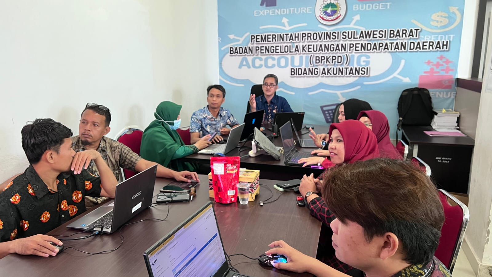 Pendampingan tersebut dipimpin langsung oleh Kepala Bidang Perbendaharaan dan Akuntansi Syaharuddin, didampingi Plt. Kasubbid Akuntansi Indah Mustika Sari, Tenaga Teknis Admin SIPD Wilayah Sulawesi Barat Azis, serta staf terkait lainnya. Kegiatan ini bertujuan untuk memastikan proses pencatatan jurnal penyusutan aset pada masing-masing perangkat daerah dapat dilakukan secara tepat dan sesuai dengan ketentuan akuntansi pemerintahan melalui sistem Sistem Informasi Pemerintahan Daerah (SIPD).