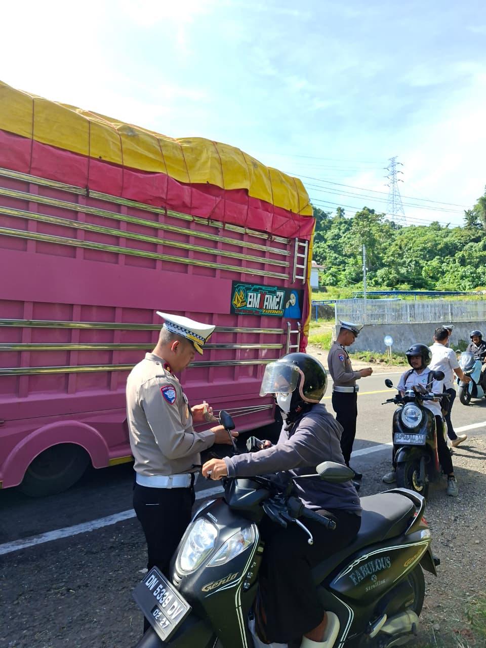 “Berkendara itu berbahaya, adik-adik. Apabila tidak mengikuti aturan dan tata tertib berkendara, taruhannya bisa nyawa. Kami harap ini menjadi pelajaran dan jangan diulangi lagi ya,” tutur seorang petugas dengan nada bijak, sambil memberikan himbauan dan edukasi kepada para pelajar.
