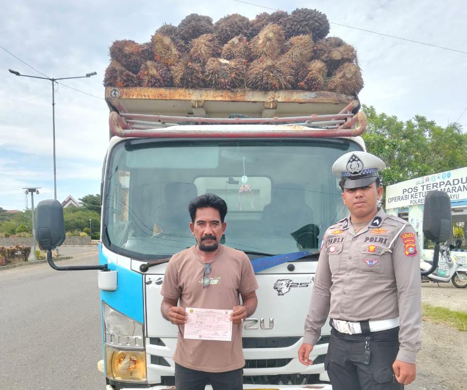 PASANGKAYU,NEWSPAS.NET– Personel Operasi Zebra Marano 2025 Sat Lantas Polres Pasangkayu memberikan teguran terhadap angkutan barang yang terindikasi melanggar aturan Over Dimension Over Load (ODOL) pada Rabu (26/11/2025).