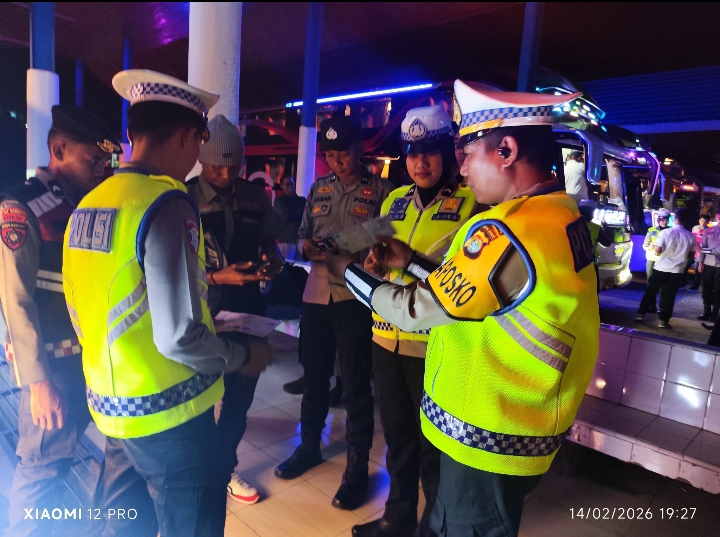 POLDA SULBAR, NEWSPAS.NET – Guna menjamin keamanan dan kelancaran perjalanan masyarakat selama masa libur jelang Ramadhan, Kepolisian Daerah Sulawesi Barat (Polda Sulbar) melalui Operasi Keselamatan Marano menggelar ramp check atau pengecekan kelayakan kendaraan bus antar kota dan antar provinsi di Terminal Simbuang, Sabtu (14/2/26).
