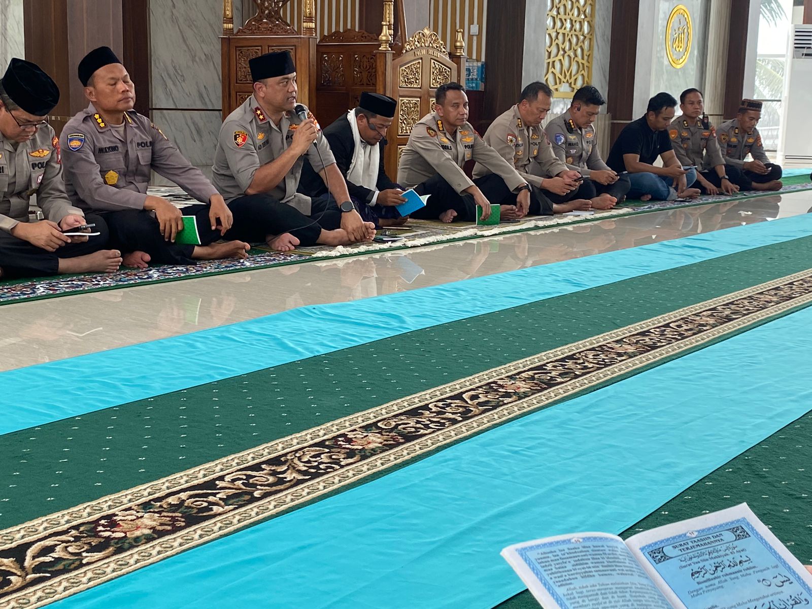 Kegiatan tersebut dipimpin langsung oleh Kapolda Sulbar, Irjen Pol Adi Deriyan Jayamarta, dan diikuti oleh seluruh personel serta jamaah yang hadir.
