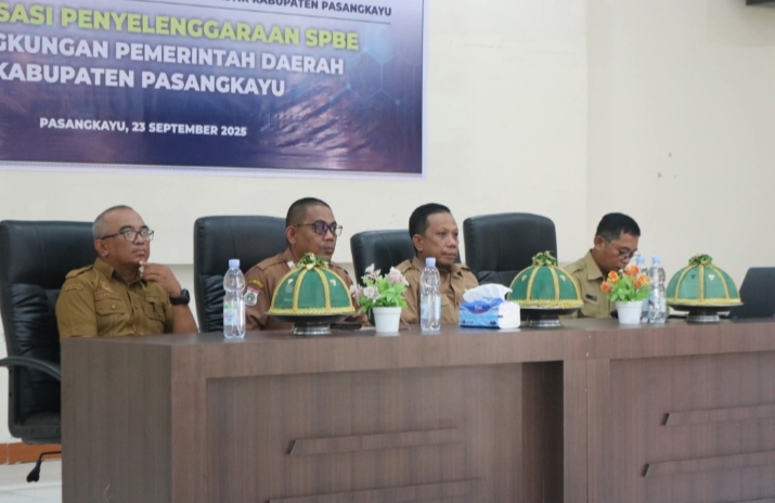 PASANGKAYU, NEWSPAS.NET – Pemerintah Daerah Kabupaten Pasangkayu melalui Dinas Komunikasi, Informatika, Statistik dan Persandian (Diskominfotiksan) menggelar Sosialisasi Penyelenggaraan Sistem Pemerintahan Berbasis Elektronik (SPBE) bagi lingkup Organisasi Perangkat Daerah (OPD), bertempat di Aula Hotel Mutiara, Selasa (23/09/2025).