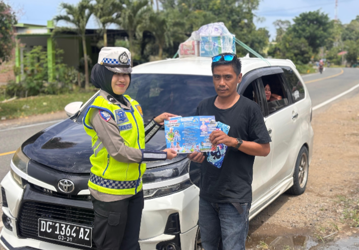 POLDA SULBAR,NEWSPAS.NET – Dalam rangka memperkuat komunikasi dengan masyarakat, Personel Lalu Lintas Polda Sulawesi Barat gencar melaksanakan serangkaian kegiatan sosialisasi, pembagian leaflet, serta stiker terkait tertib berlalu lintas kepada para pengendara kendaraan roda dua (R2) dan roda empat (R4) serta masyarakat yang dijumpai.