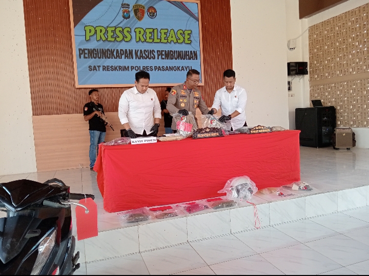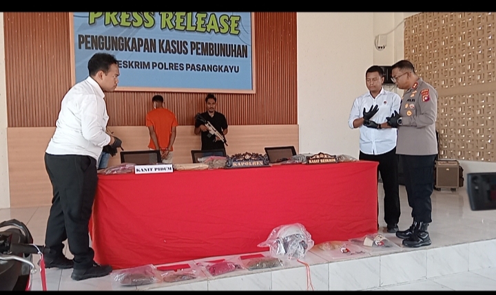 PASANGKAYU, NEWSPAS.NET –Polres Pasangkayu berhasil mengungkap kasus tindak pidana pembunuhan terhadap seorang karyawan PT Permodalan Nasional Madani (PNM) yang terjadi di Dusun Tanga-Tanga, Desa Sarjo, Kecamatan Sarjo, Kabupaten Pasangkayu. Pengungkapan kasus ini disampaikan dalam kegiatan press release yang digelar pada Senin (22/09) di Baruga Wicaksana Laghawa, Mapolres Pasangkayu.