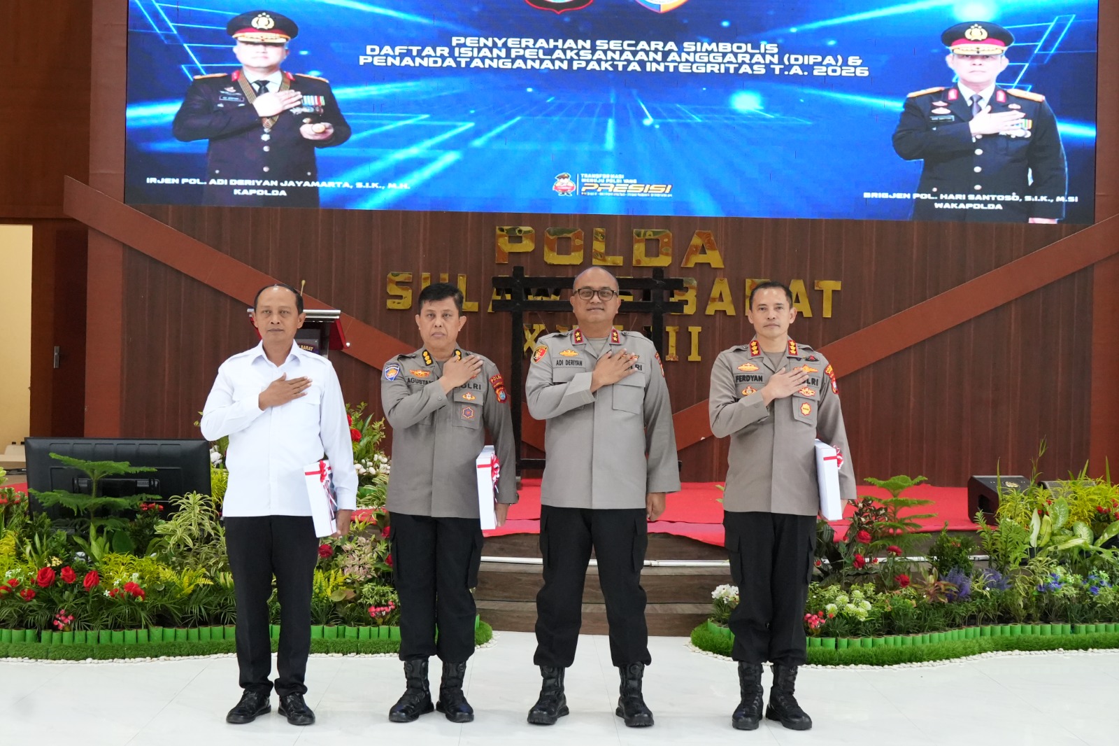 ‎Kegiatan yang dibuka langsung oleh Kapolda Sulbar Irjen Pol Adi Deriyan Jayamarta serta dihadiri oleh sebanyak 150 personel ini juga menjadi momentum penyerahan Dokumen Induk Pelaksanaan Anggaran (DIPA) Tahun Anggaran 2026, dilanjutkan dengan arahan langsung dari Kapolda.