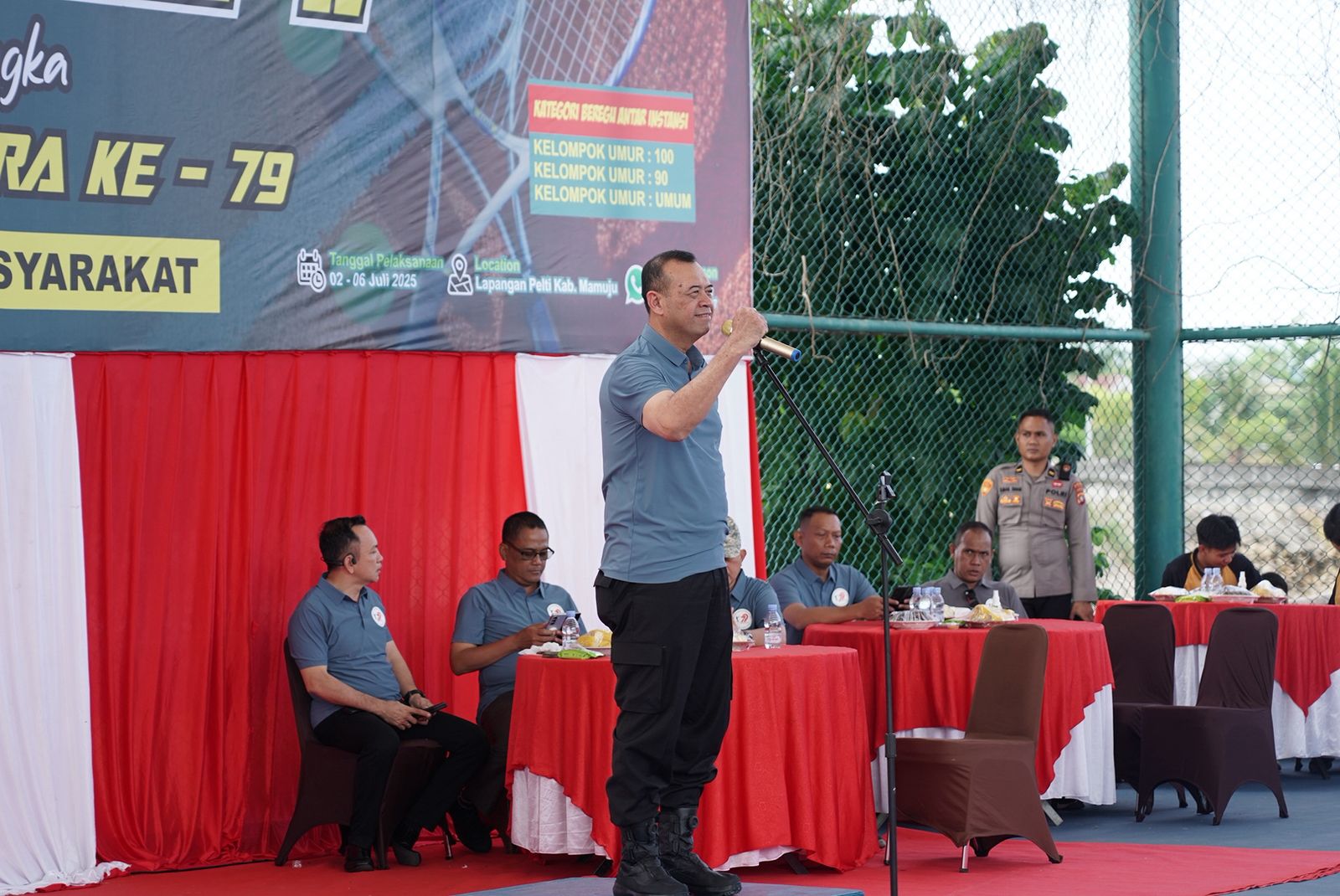 POLDA SULBAR, NEWSPAS.NET– Kemeriahan menyelimuti Lapangan Tenis Pelti Mamuju, Rabu (2/7/25).  Kapolda Sulawesi Barat, Irjen Pol Adang Ginanjar, secara resmi membuka Turnamen Tenis Lapangan Kapolda Cup dalam rangka memeriahkan Hari Bhayangkara ke-79. Kejuaraan bergengsi ini diikuti oleh para pejabat utama dan personel Polri dengan berbagai kategori pertandingan.