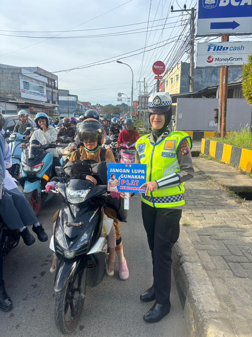 ‎Tak hanya itu, personel juga menekankan pentingnya penggunaan helm yang telah bersertifikasi SNI untuk pengendara sepeda motor, serta pemakaian sabuk pengaman bagi pengendara dan penumpang kendaraan bermotor roda empat. Selain itu, juga diingatkan agar setiap kendaraan selalu memasang plat nomor yang sah dan membawa kelengkapan surat-surat kendaraan seperti STNK dan SIM yang masih berlaku.