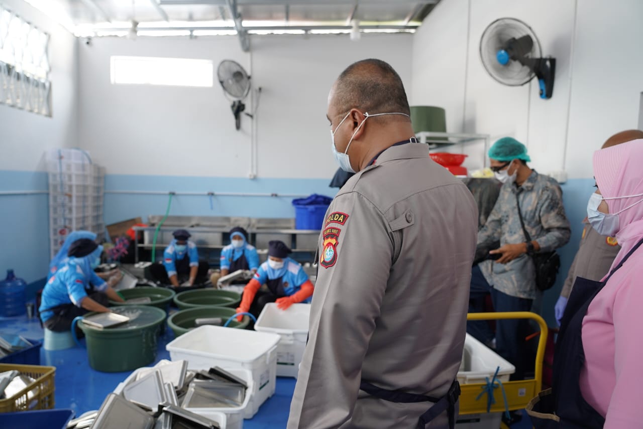 Usai peresmian, Kapolda bersama rombongan meninjau langsung dapur umum untuk memastikan kebersihan serta kesiapan bahan makanan yang akan disajikan bagi para pelajar.