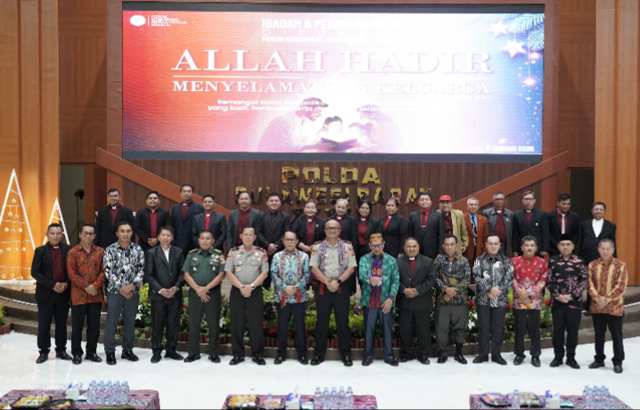 POLDA SULBAR ,NEWSPAS.NET- Perayaan Natal Oikumene Forum Komunikasi Gereja-gereja di Mamuju (FKGM) tahun 2025 berlangsung meriah, Kamis (8/1/26) di Aula Marannu Polda Sulawesi Barat.