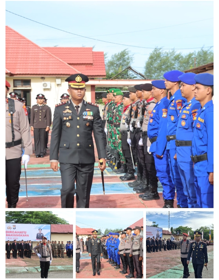 Rangkaian upacara berlangsung dengan tertib dan lancar, dimulai dari penghormatan pasukan, laporan Komandan Upacara, mengheningkan cipta, pengucapan Tribrata, pembacaan doa, hingga lagu kebangsaan Andika Bhayangkari. Kegiatan berakhir pada pukul 11.30 WITA dalam suasana yang aman, tertib, dan penuh rasa kebanggaan.