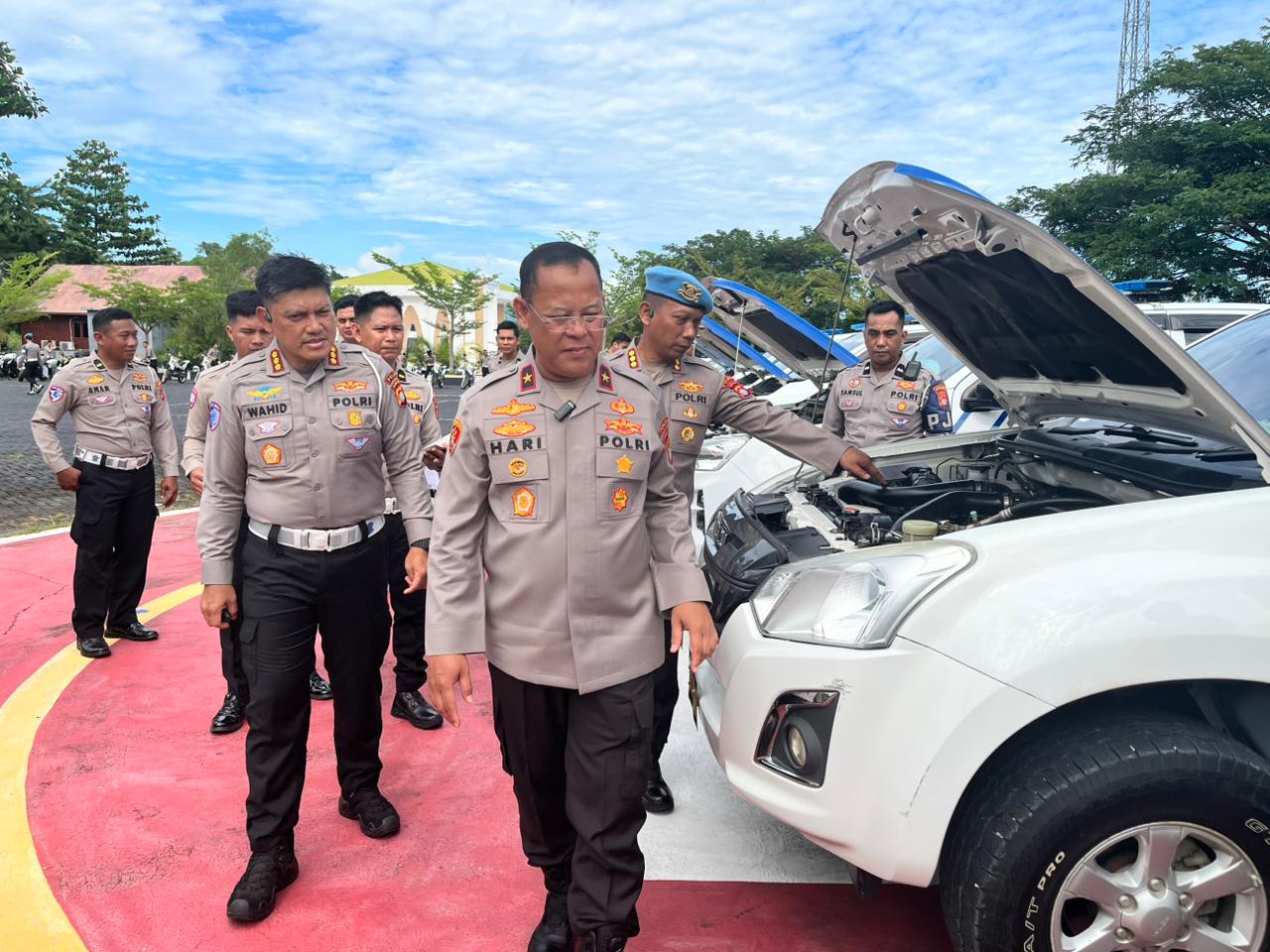Dalam kegiatan tersebut, Brigjen Pol Hari Santoso secara detail memeriksa kondisi mesin, kelengkapan surat-surat, hingga kesiapan peralatan pendukung seperti lampu rotator, sirine dan alat komunikasi. Ia menekankan pentingnya perawatan rutin dan pengecekan berkala agar setiap kendaraan selalu dalam kondisi prima.