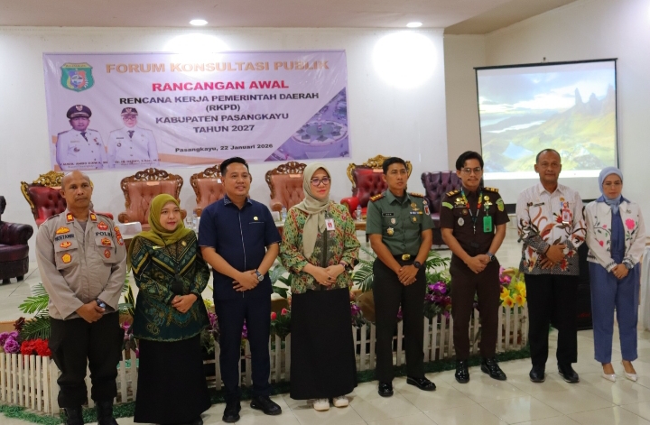 PASANGKAYU,NEWSPAS.NET — Wakil Bupati Pasangkayu,Herny Agus, menghadiri Forum Konsultasi Publik dalam rangka Penyusunan Rancangan Awal Rencana Kerja Pemerintah Daerah (RKPD) Tahun 2027, yang diselenggarakan oleh Badan Perencanaan Pembangunan Daerah (BAPPERIDA) Kabupaten Pasangkayu. Kegiatan tersebut berlangsung di Hotel Trisakti, Jalan Fatmawati, Pasangkayu, pada Kamis, 22 Januari 2026.