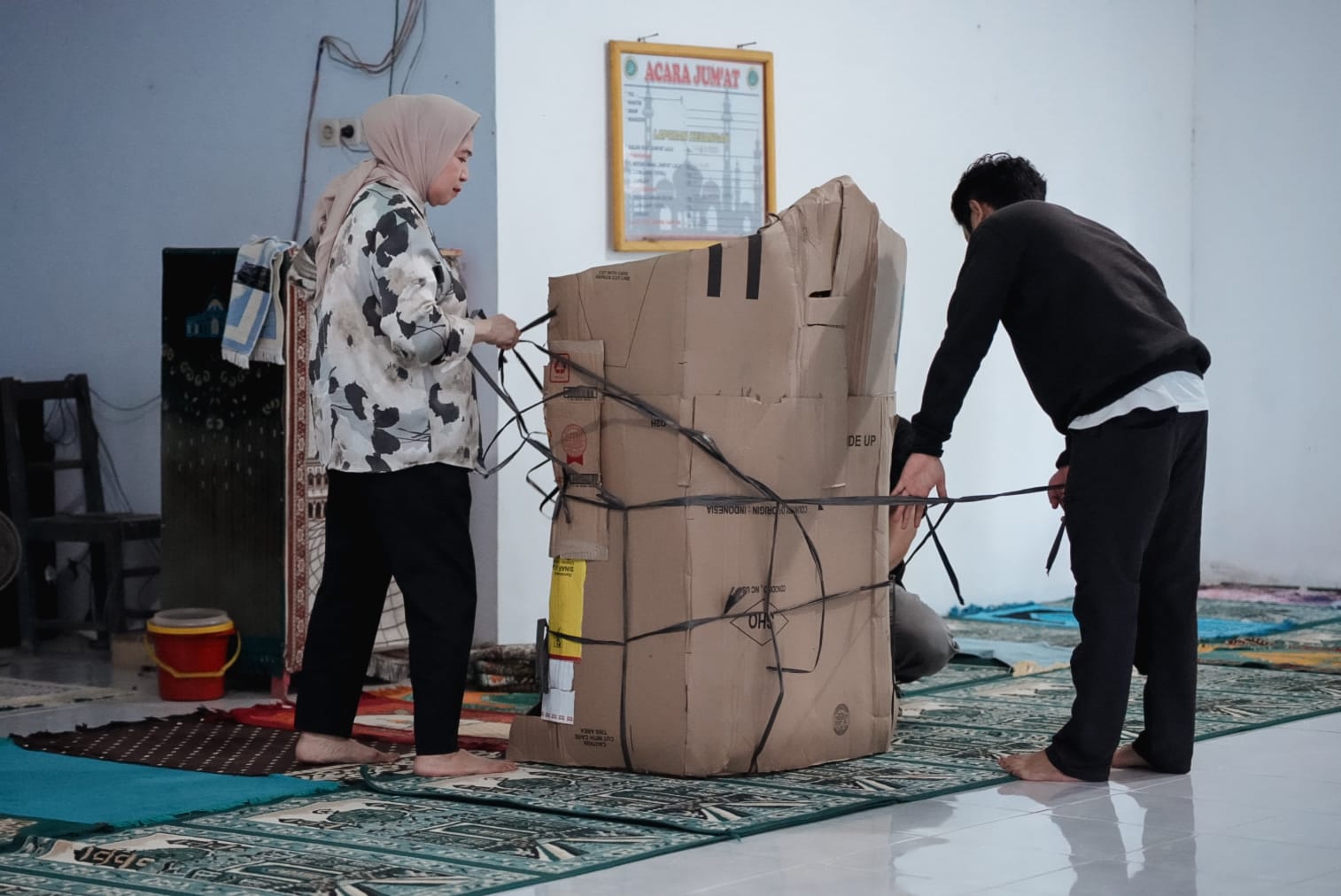 “Waktu almarhum khutbah di sini beberapa bulan lalu, mimbar sudah mulai rapuh. Selesai khutbah, beliau bilang ingin menggantinya dengan yang lebih baik supaya jamaah bisa lebih nyaman. Tapi belum sempat beliau wujudkan. Hari ini, saya hanya melanjutkan apa yang menjadi keinginannya,” tutur Fatmawati.